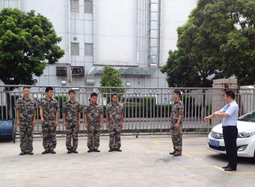 為了加強保安隊伍建設,提高隊員的行為規范和職業形象,集團對保安隊隊員進行強化訓練。7月25日,集團保安隊隊長陳志剛率領隊員在園區內如期開展訓練,行政部經理何先兵也到現